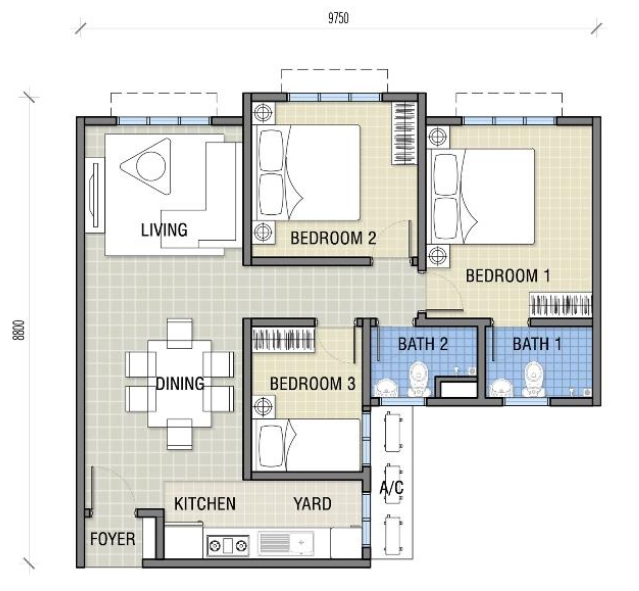3 Bilik Tidur